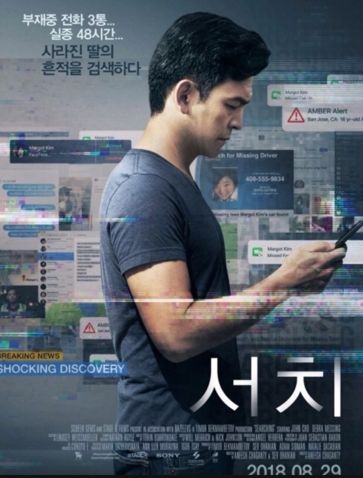 이번에 살펴볼 영화는 영화 <서치 1>입니다. 이 영화는 2018년도 8월에 개봉했는데요. 먼저 다른 영화와는 달리 영화의 진행 방식이 영상통화, 카메라 앵글이 돌아가는 듯이 진행이 됩니다. 다른 영화들과는 굉장히 다른 전개인데요. 이 영화의 전체 줄거리와 리뷰를 살펴보도록 하겠습니다.